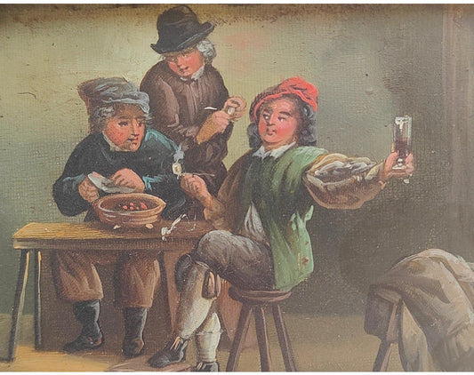 au cabaret- huile sur métal non signée